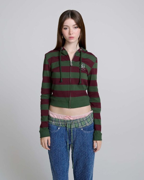 Fitted Stripe Zip-Up Hoodie Green/red | Women Marc Jacobs Ready To Wear